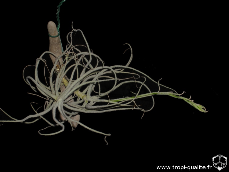 Ce rare Tillandsia est originaire du Brésil. On le retrouve souvent aux alentours de 1000 mètres d’altitude. Il présente une allure semblable à celle de T. streptocarpa mais des feuilles très écailleuses, semblables à celles de T. tectorum.