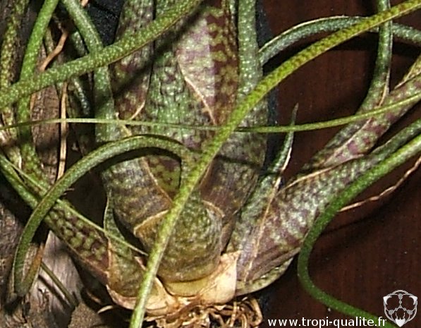 Plante : petite épiphyte (20 à 25 cm) acaule. Cette espèce produit de nombreux rejets, parfois avant même la floraison et forme ainsi rapidement de belles touffes.