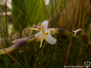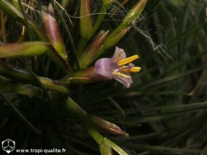 Fleurs : presque sessiles, non tubulaires, longues de 2 cm, presque blanches à lilas. Les étamines et le pistil sont exserts. Absence d'odeurs.