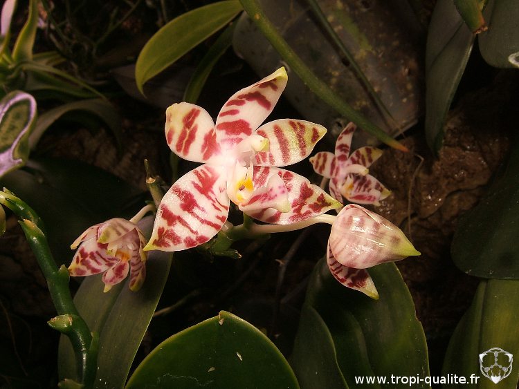 Après quelques semaines d'hésitation, mon Phalaenopsis amboinensis se décide enfin à ouvrir sa première fleur de la saison. C'est une espèce que j'apprécie beaucoup à cause de la multitude de couleurs sur les fleurs et par le parfum vraiment extraordinaire qu'elles dégagent.
