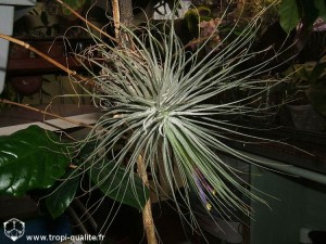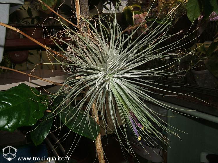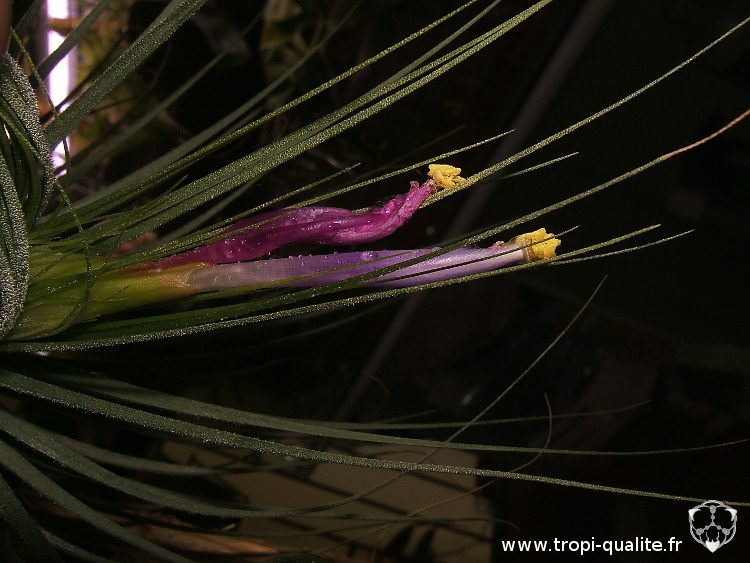 Après 5 ans en culture sans voir la moindre fleur, mon Tillandsia magnusiana se décide enfin à fleurir. Cette espèce fait généralement un seul petit épi, peu ramifié, dépassant à peine du reste de la plante. Bref une floraison qui a bien failli passer inaperçue dans mes collections, ce qui aurait été dommage… Voici les photos :