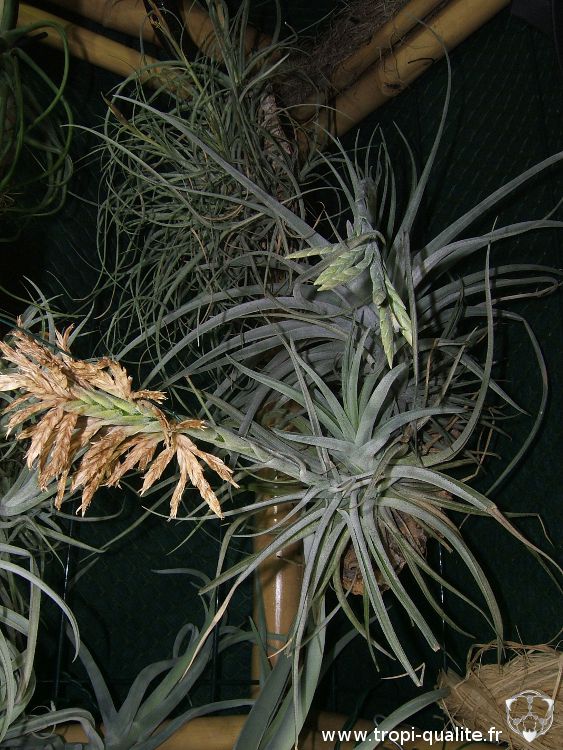 Cette fois-ci, la floraison est moins spectaculaire, bien que, curieusement, le pied soit bien plus gros (ce n'est pas le même, il s'agit d'un rejet de seconde génération de 45 cm de diamètre d'un autre pied que je cultive depuis longtemps). En plus, n'ayant plus trop de place sur mon cadre, il s'est retrouvé dans un coin, et manque un peu de lumière. Du coup l'inflorescence est bipennée et verdâtre et non subtripennée et rougeâtre (comme pour la floraison de l'autre pied qui avait eu lieu en été et dehors, en plein soleil…). Ce n'est pas grave, les petites fleurs blanches et délicates sont bien au rendez vous :