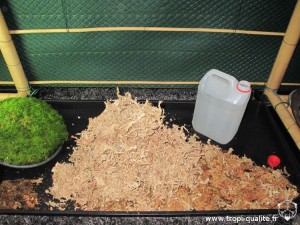 - De l'eau déminéralisée, pour remplir un peu le bac, humidifier la sphaigne morte et arroser.