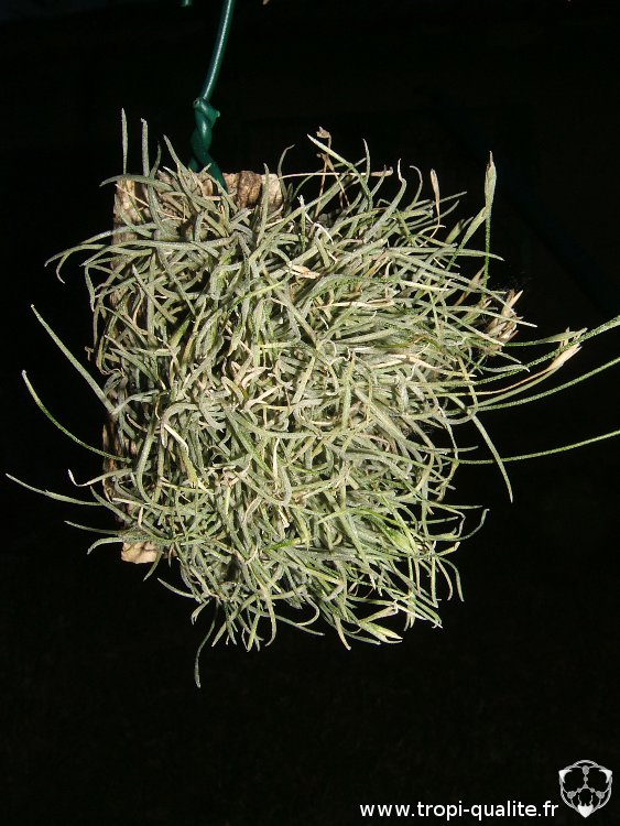 C’est un Tillandsia très connu, surtout pour sa capacité à coloniser les fils électriques. Il est originaire d’une zone allant du sud de l’Amérique du nord jusqu’au nord du Chili et au centre de l’Argentine. On le retrouve à des altitudes allant de 0 à un peu plus de 3000 mètres. Cette espèce, assez variable, peut facilement être confondue avec T. mallemontii lorsqu’elle n’est pas en fleur.