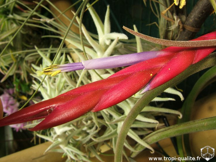 Voici une floraison très spectaculaire de T. caput-medusae. J'ai le pied mère depuis 2 ans (en haut, un peu jaunâtre sur la photo), il a formé énormément de rejets (6) et 3 ont décidé de fleurir en même temps ! Il faut dire que le pied mère était déjà de très belle taille et je m'attendais donc à voir apparaître de nombreux rejets : je n'ai pas été déçu. Voici les photos :
