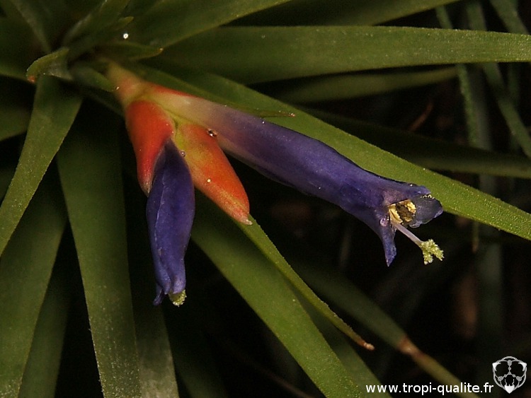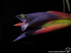 Alors que la forme Ecuador de cette espèce (qui appartient aujourd'hui au genre Vriesea) a fleuri il y a déjà plusieurs années dans mes collections, il m'aura fallu attendre la floraison d'un des rejets de la forme Peru afin de pouvoir observer la fleur. En effet, mon premier spécimen de la forme Peru avait avorté sa floraison et est donc passé directement par la case rejet… Peu importe, je peux (enfin) achever l'illustration de la fiche botanique de cette très belle espèce :