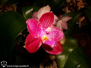 Encore une floraison dans mes collections (ça n'arrête pas en ce moment ^^). Je suis assez fier de celle-ci car ce Phalaenopsis m'a posé pas mal de problèmes en culture. La fleur est magnifique avec des teintes rouges et mauves, un labelle assez large couvert de poils violets et un parfum très agréable. Voici les photos :