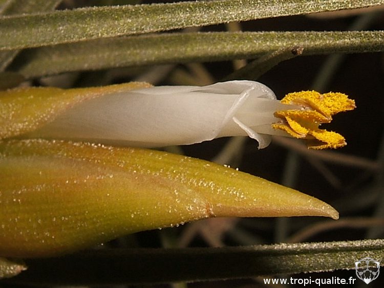 Voilà plusieurs mois que l'inflorescence ne poussait plus sur ce Tillandsia assez peu fréquent en culture. J'ai d'ailleurs bien cru que celle-ci avait avorté. Mais finalement les tubes blancs se succèdent à une vitesse assez incroyable, pour mon plus grand bonheur. Voici les photos :