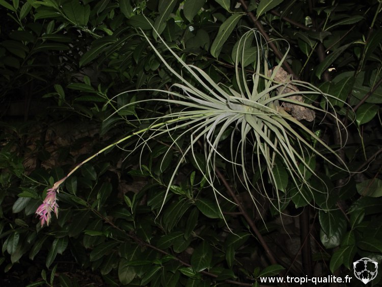 Quelques jours seulement après la floraison de mon Tillandsia straminea à feuilles épaisses (Thick leaf form), que je vous avais présenté vendredi dernier, mon Tillandsia straminea à grande tige et à feuilles souples (que l'on retrouve sous les noms Soft leaf form, Stem form ou encore Bush form) s'y met aussi ! Comme souvent avec cette espèce, on se demande en regardant l'inflorescence grandir quand va s'ouvrir la première fleur… Après plusieurs mois de patience, c'est chose faite et je peux partager avec vous la floraison de ce très beau spécimen :