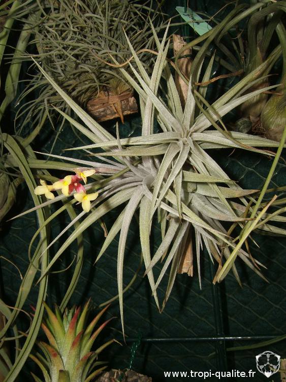 Un petit mois seulement après l'apparition de l'inflorescence, ce petit Tillandsia est déjà en fleur ! Je trouve l'association des couleurs vraiment intéressante, jugez plutôt :