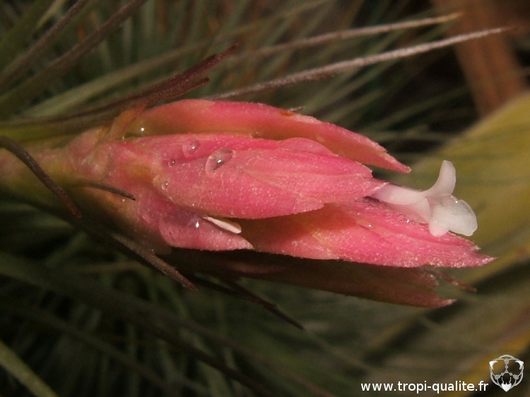 Voici une espèce peu répandue en culture et il m'aura fallu de nombreuses années de patience avant de voir la première fleur s'épanouir sur l'inflorescence d'un des nombreux rejets de ma plante. C'est donc avec une certaine émotion que je partage ce moment tant attendu avec vous, voici les photos :