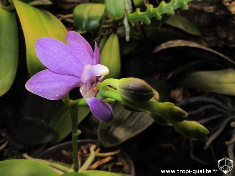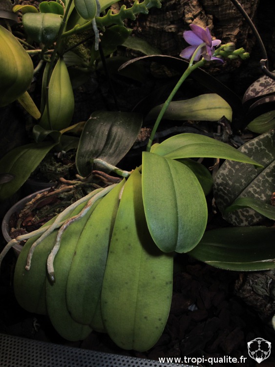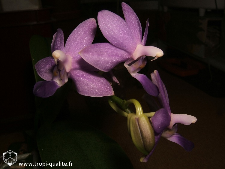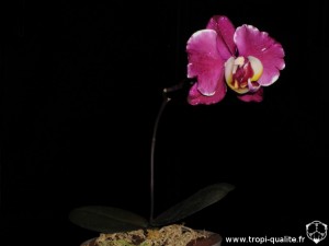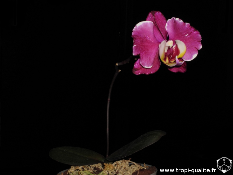 Un peu plus de 3 ans (et plusieurs floraisons avortées) auront été nécessaires pour avoir la chance de voir à nouveau s'ouvrir une fleur de ce cultivar encore peu répandu en collection. Alors que le labelle est identique à celui des fleurs de janvier 2011, les pétales et les sépales sont légèrement différents… On dirait un peu plus une fleur de l'hybride Elegant Deborah ! Je n'ai pas encore trouvé l'origine de ces différences de coloris (problème de culture, déviance du cultivar, etc.) mais je savoure néanmoins l'unique fleur de cette plante que je trouve capricieuse et difficile à cultiver :
